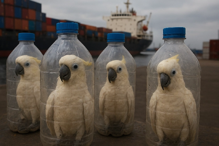 O mundo reagiu com indignação às imagens divulgadas na Indonésia: 24 aves da espécie cacatua-sulfúrea (Cacatua sulphurea) — uma das mais raras e criticamente ameaçadas de extinção — foram encontradas vivas aprisionadas dentro de garrafas plásticas em um porto da cidade de Ternate.