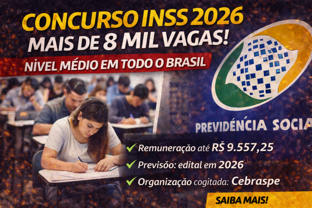 #ConcursoINSS, #INSS2026, #ConcursoPublico, #NivelMedio, #TecnicoDoSeguroSocial, #Cebraspe, #EmpregoPublico, #EditalINSS, #CarreiraPublica, #VagasINSS