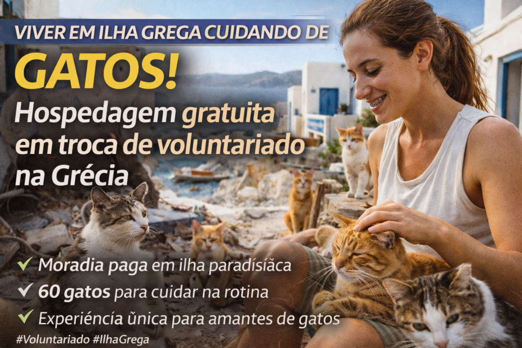 Foi divulgada recentemente uma iniciativa que despertou curiosidade mundial: a possibilidade de viver em uma ilha da Grécia com hospedagem gratuita em troca do cuidado de gatos resgatados. Entretanto, é importante esclarecer que não se trata de uma política governamental, tampouco de um benefício oferecido a moradores em geral. A proposta está vinculada a um programa específico de voluntariado realizado na ilha de Syros, no mar Egeu.