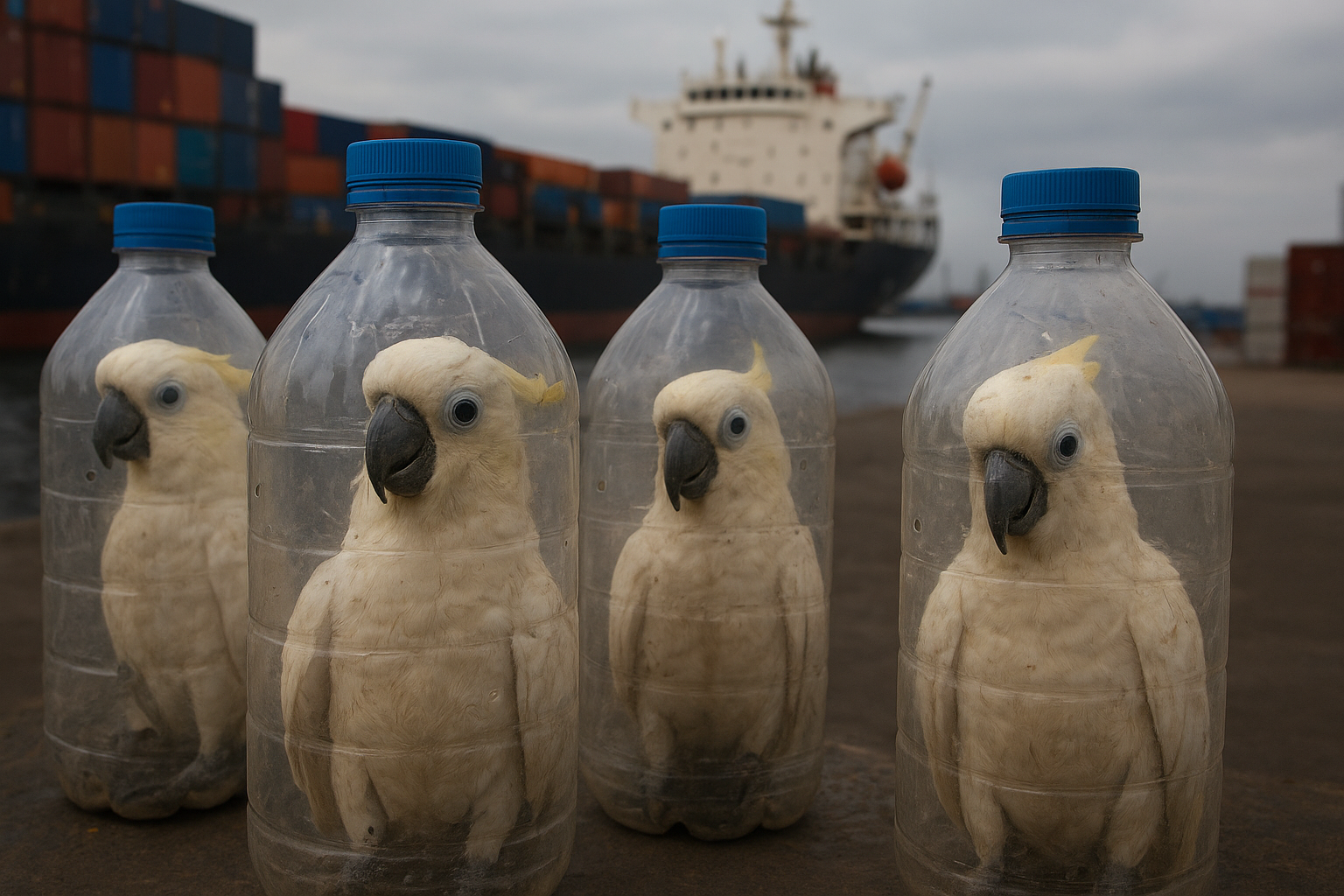 O mundo ficou chocado com as imagens vindas da Indonésia: 24 aves da espécie cacatua-sulfúrea (Cacatua sulphurea) — uma das mais raras e criticamente ameaçadas de extinção — foram encontradas vivas dentro de garrafas plásticas em um porto da cidade de Ternate.